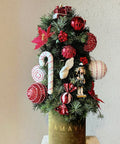 İçerik: Çam dalları, kırmızı kokinalar, candy cane & lolipop figürleri, mini hediye kutuları, yılbaşı topları, nutcracker süsü, kozalak detayları