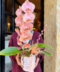 Pastel tonların zarafetini modern bir dokunuşla buluşturan Blush Orchid, tek dal orkidede en şık ve en sade haliyle lüks bir görünüm sunar. Şeftali-pembe geçişli özel orkide, modern dokulu seramik saksı ve soft pembe dekoratif detaylarla birleşerek romantik, temiz ve zamansız bir kompozisyon oluşturur. Hem minimal hem de etkileyici bir hediye arayanlar için ideal bir seçenektir.