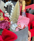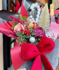 İçerik: Patiswiss çilek kaplı çikolata, özel tasarım şeffaf hediye küresi (isteğe göre isim yazılır), şık yılbaşı ağacı figürü, renk uyumlu şampanya, kırmızı krizantem, gül, kozalak detayları, yılbaşı yeşillikleri, pampas ve dekoratif objeler.