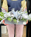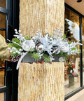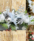 Silver Frost, yeni yılın sofistike ışıltısını gümüş tonlarının modern dokusuyla bir araya getiren özel bir Amavi Flowers tasarımıdır. Üst bölümde yer alan silver süslemeler, parlak cam küre detayları, kar efektli kozalaklar ve yılbaşı çam dalları; sade ama gösterişli bir kompozisyon oluşturur.