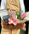 Kahverengi süet dokulu Amavi özel kutusunda hazırlanan bu aranjman; orkide, tilandsia (hava bitkisi) ve seçkin tamamlayıcı ürünlerle tasarlanmıştır.