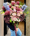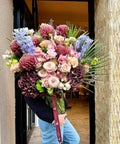 Bordo, pudra ve lavanta tonlarının büyüleyici uyumuyla hazırlanan bu özel aranjman, mevsimin sıcak ama sofistike ruhunu yansıtır.