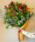İçerik: Kokina, okaliptus, çam dalları, altın mini kozalak, altın yılbaşı süsleri, mevsim yeşillikleri