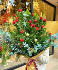 Her bir parça, mevsimin ruhunu en doğal haliyle yansıtırken yaşam alanlarına hem ferahlık hem de şık bir yılbaşı ışıltısı kazandırır. Altın kozalaklar ve minimal dekoratif dokunuşlar, aranjmana yeni yılın umut dolu enerjisini taşır.