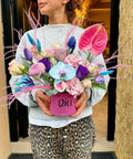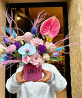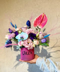 Bu özel aranjman; zarif antoryum, göz alıcı galaksi laleleri, hacimli ve ihtişamlı anastasya çiçekleri, romantik güllerve egzotik güzelliğiyle orkideler ile hazırlanmıştır. Her biri özenle seçilen bu çiçekler, kompakt ama etkileyici bir tasarım içinde bir araya getirilmiştir.