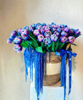 Göz alıcı mavi-mor tonlarıyla galaksi laleleri, hem romantik hem de asil bir etki bırakır. Yoğun ve hacimli yapısıyla bu buket, özel günlerde olduğu kadar, sadece “seni seviyorum” demek için de unutulmaz bir seçenektir.