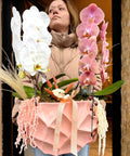 Yumuşak pudra tonlarının zamansız bir zarafetle buluştuğu Blush Équilibre, denge, huzur ve rafine şıklığı temsil eden özel bir tasarımdır. Beyaz ve pudra tonlarındaki orkide çiçekleri, modern seramik vazo ile bir araya gelerek mekâna sakin ama güçlü bir etki kazandırır.