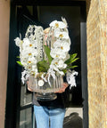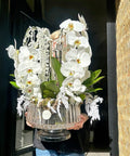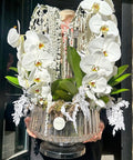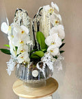 Pearl Orchid, özel tasarım cam vazosunda sunulan, 360 derece orkide görünümüne sahip ters yerleştirilmiş beyaz orkidelerle hazırlanmış eşsiz bir aranjmandır.