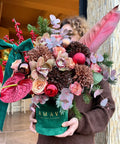 Doğanın derin tonları ile sofistike kırmızı dokunuşların kusursuz uyumundan ilham alan Velvet Forest Rouge, Amavi Flowers’ın kış sezonuna özel, güçlü ve zamansız tasarımlarından biridir. Kadife dokulu yeşil kutu içerisinde; sıcak kahve ve bordo tonları, yumuşak pembe geçişlerle dengelenerek hacimli ve çarpıcı bir kompozisyon oluşturur. Modern yaşam alanlarında dekoratif bir etki yaratırken, özel günlerde unutulmaz bir hediye alternatifi sunar.