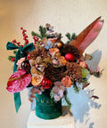 İçerik: Antoryum, orkide, gül, kasımpatı, okaliptus, doğal çam dalları, mevsimsel yeşillikler ve dekoratif kış aksesuarları.