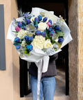 Soğuk mavi tonların zarif beyazlarla buluştuğu Azure Éternité, zamansız bir şıklık ve rafine bir dinginlik hissi yaratır. Özel galaksi lalelerin sofistike duruşu; beyaz ortanca ve dolgun beyaz şakayıklarla dengelenerek modern, ferah ve etkileyici bir kompozisyon sunar. Minimal lüksü sevenler için güçlü ama sakin bir ifade taşır.