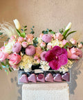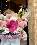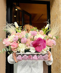 Yumuşak pembe tonlarının zarafetle katmanlandığı Amavi’s Opéra Rosé, romantizmi modern bir lüks anlayışıyla buluşturur. Pastel güller, ortancalar ve seçkin çiçeklerin merkezde vurgulanan orkide ile dengelendiği bu özel tasarım, duygusal ama iddialı bir etki yaratır. Pleksi kutu içinde yer alan premium kalp çikolatalar ise aranjmana sofistike bir hediye dokunuşu ekler.